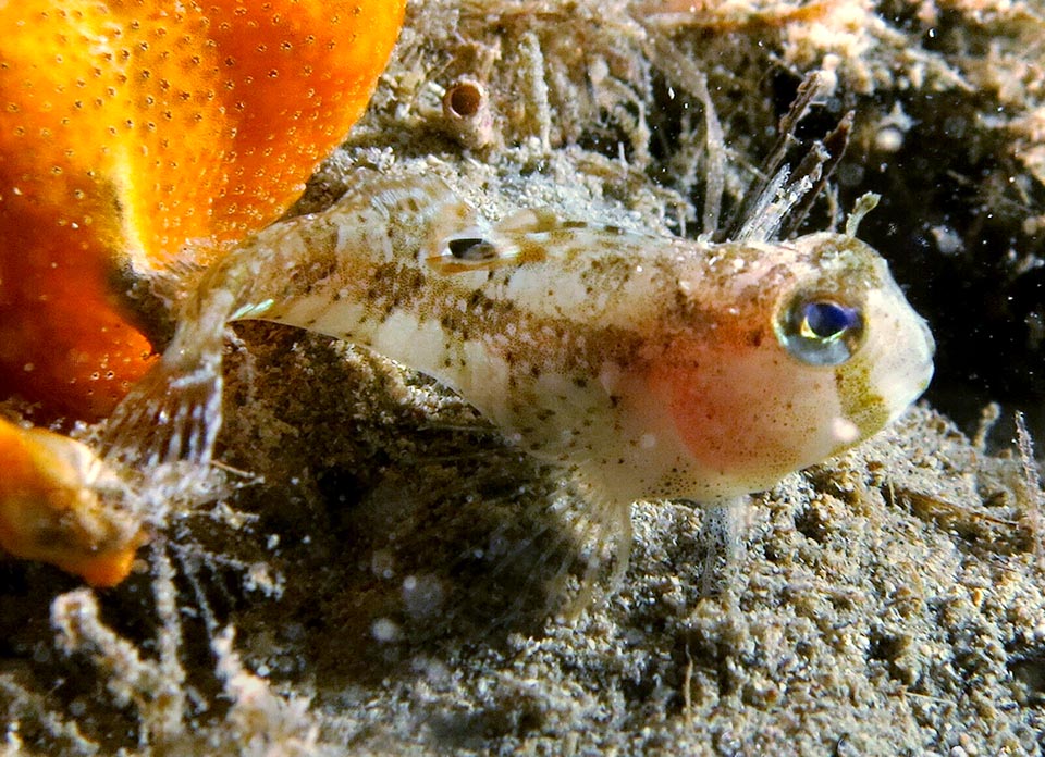 Blennius ocellaris feeds, mainly by night, on small benthic invertebrates like worms and crustaceans, but also of small fish and organic debris falling on the seabeds © Frédéric André