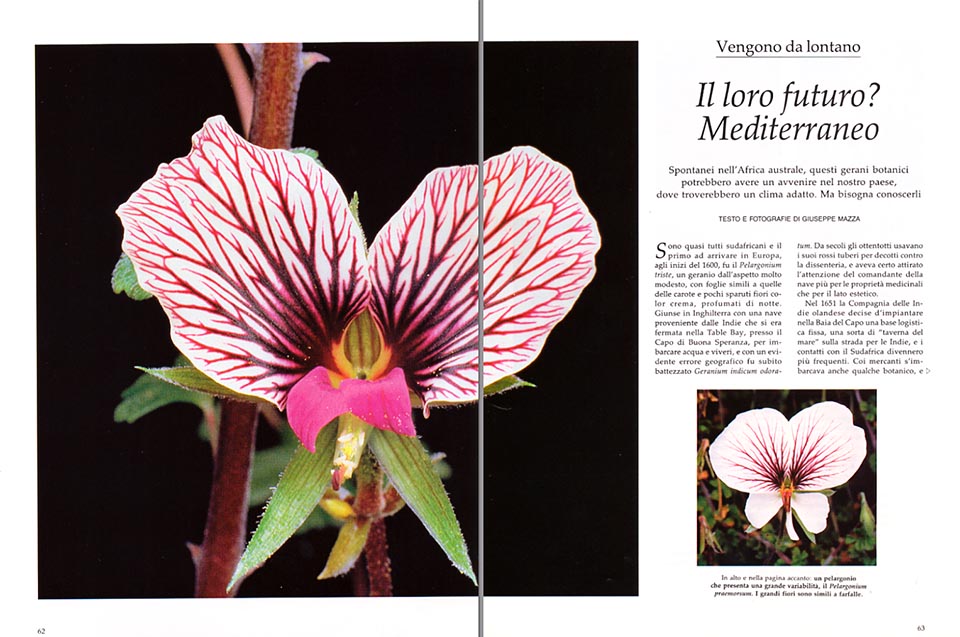 Ma questi, in Italia, sono quasi introvabili : le origini si nascondono, come sempre, sotto gli inizi, e per conoscere i capostipiti del nostro geranio domestico bisogna andare in Sudafrica, nella provincia del Capo.