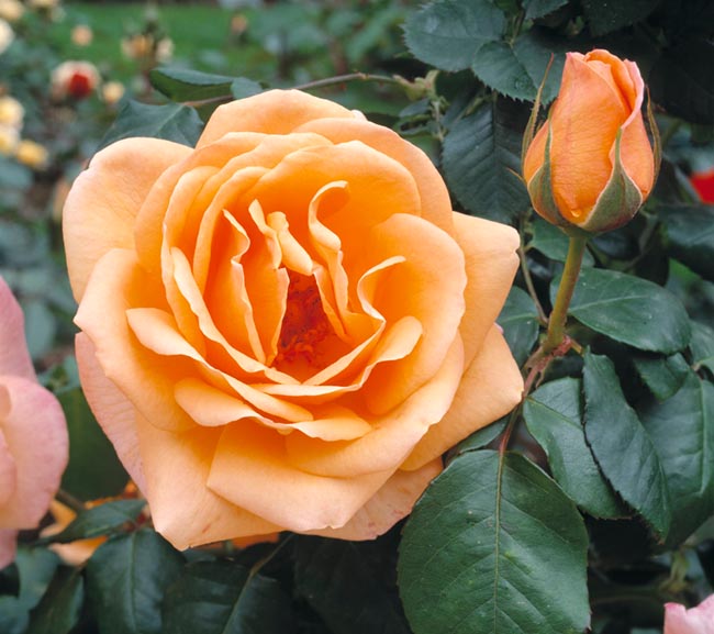 Corolle con 40 petali sfumati d’arancio, leggermente profumati.