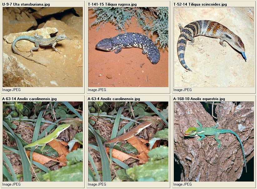 Physignathus lesueurii – Sceloporus clarkii – Sceloporus graciosus – Psammodromus algirus – Tupinambis teguixin – Takydromus sexlineatus
